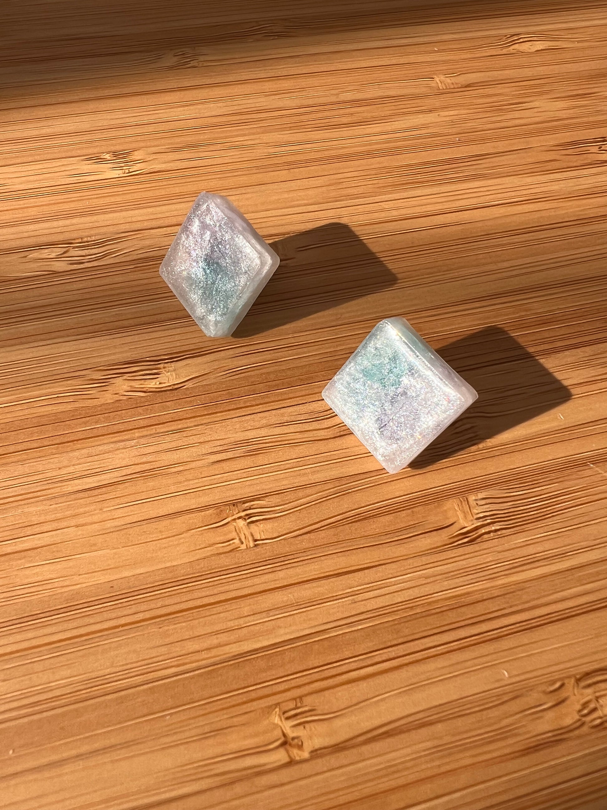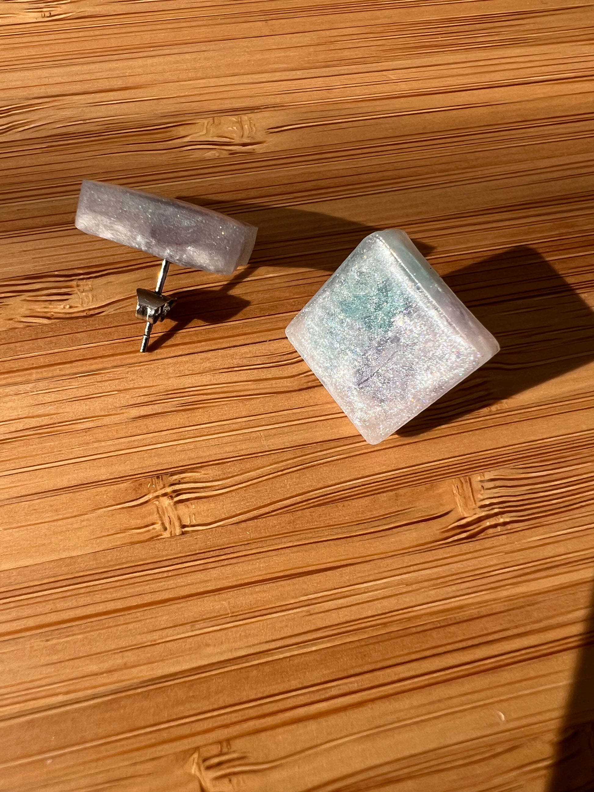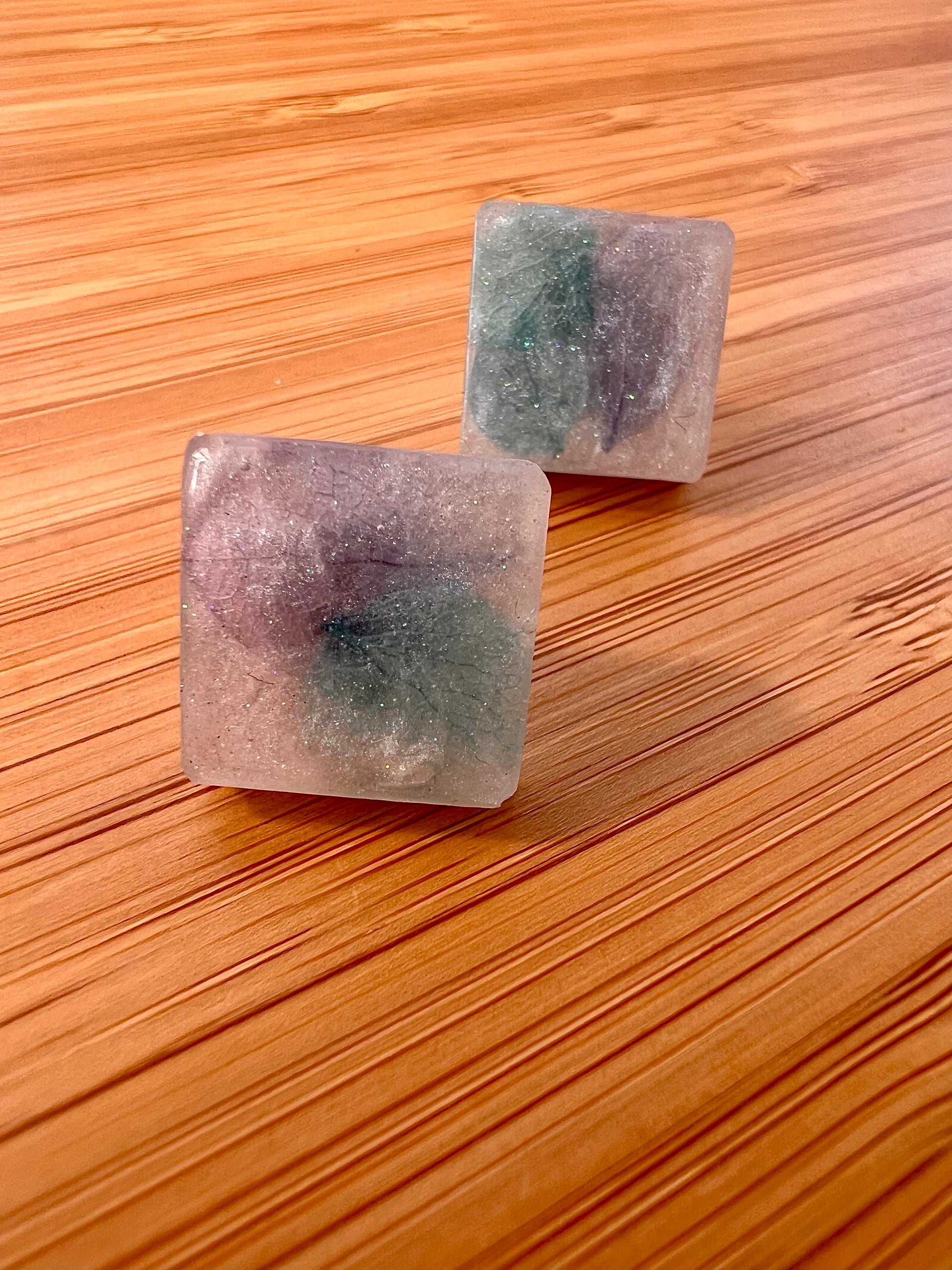 Обеци от епоксидна смола с инкрустирани цветчета.